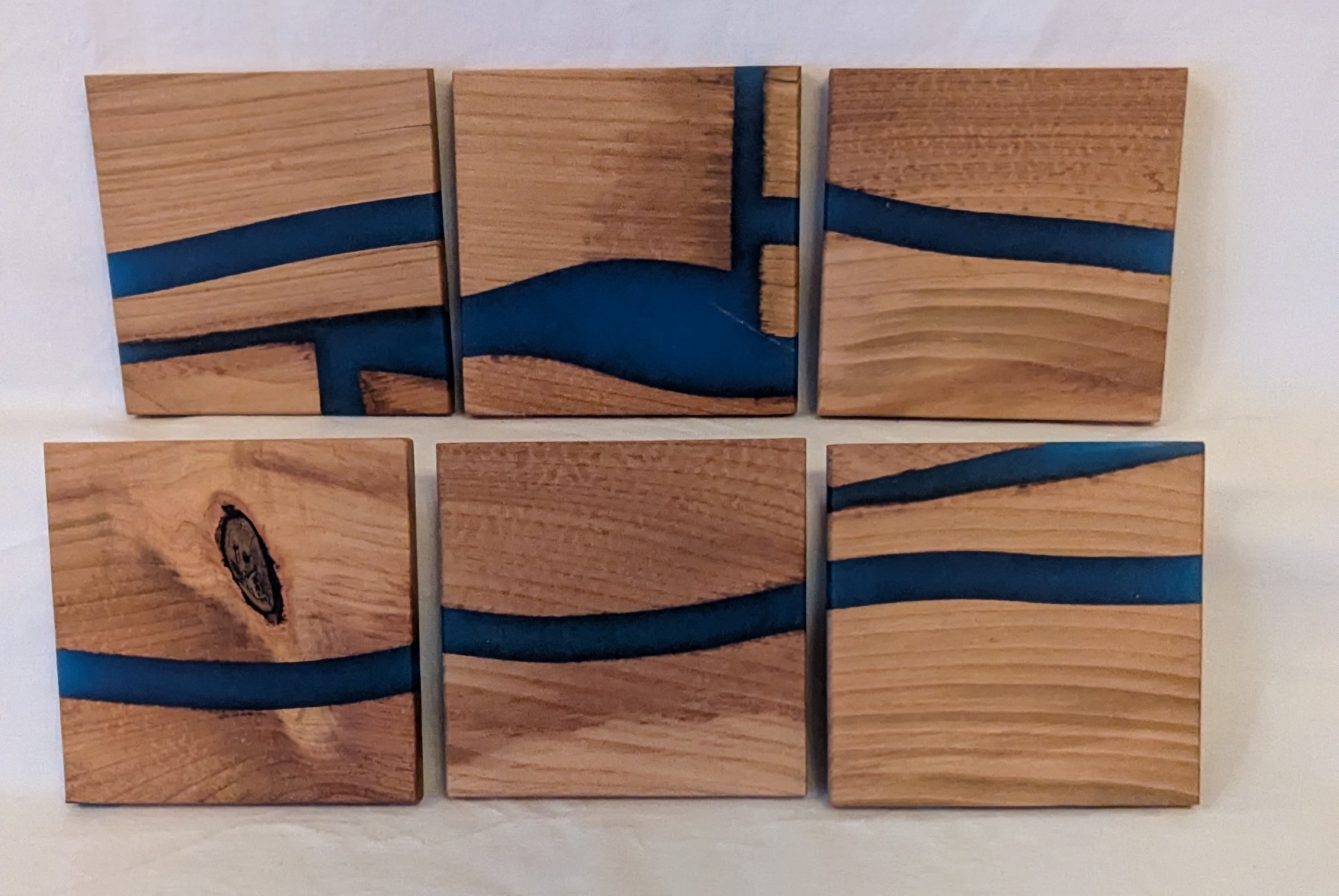 Beech with Turquoise Epoxy Coasters (set of 6). 100x100x6mm.