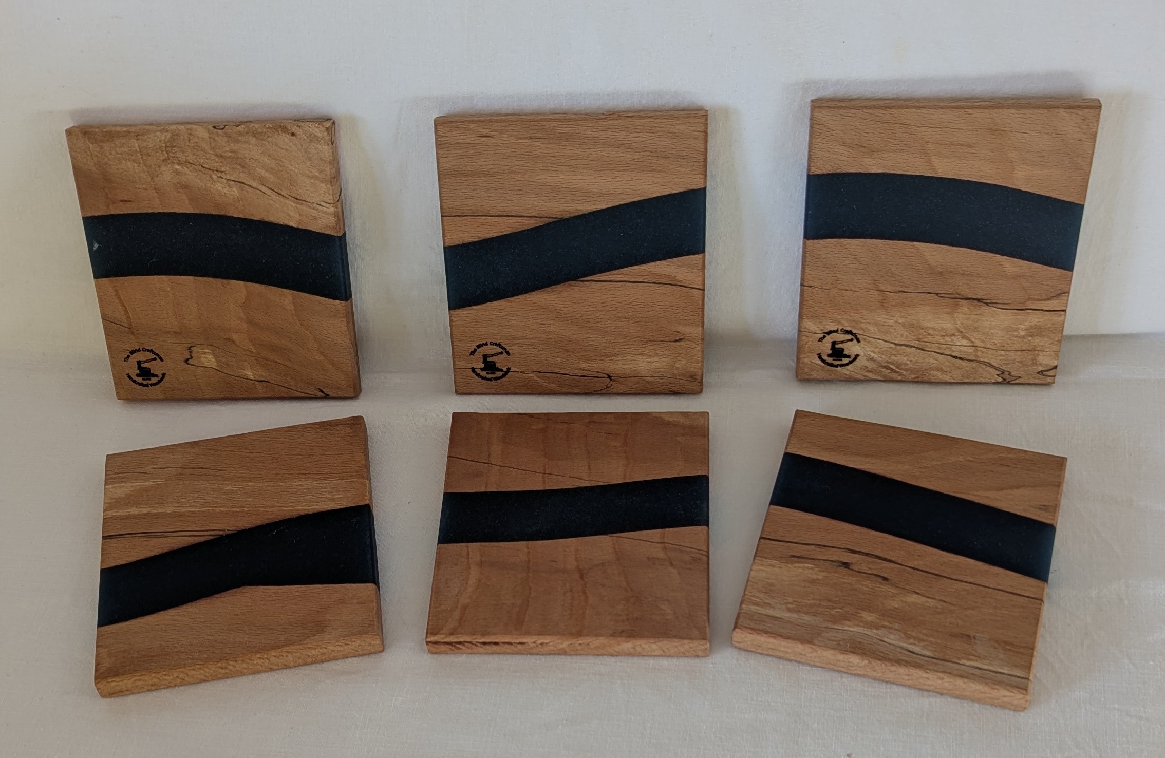 / Beech with Dark blue epoxy coasters (set of 6). 100x109x10mm.