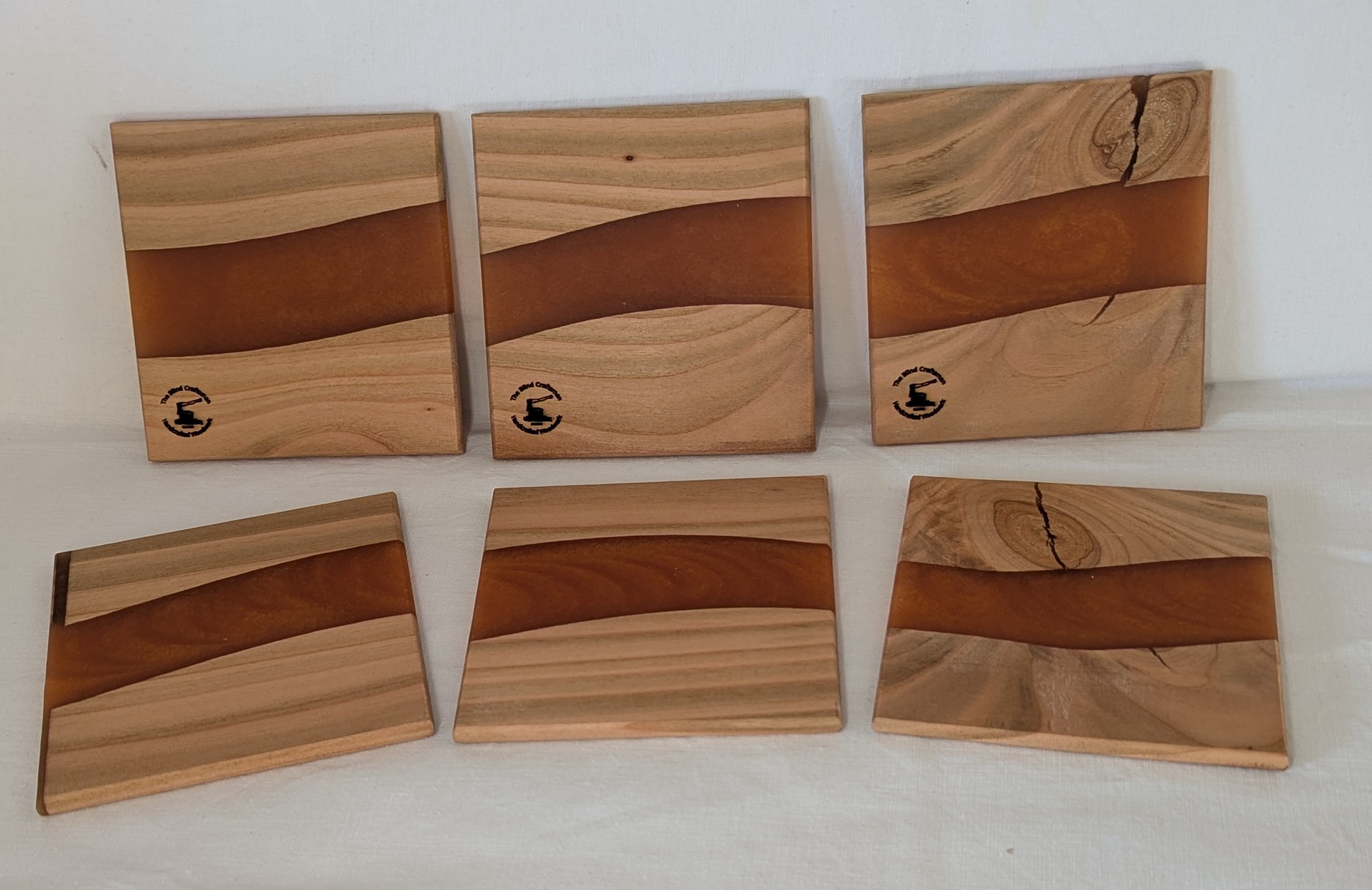 Set of 6 Oak Coasters with Light Gold Epoxy. 100mm x 100mm