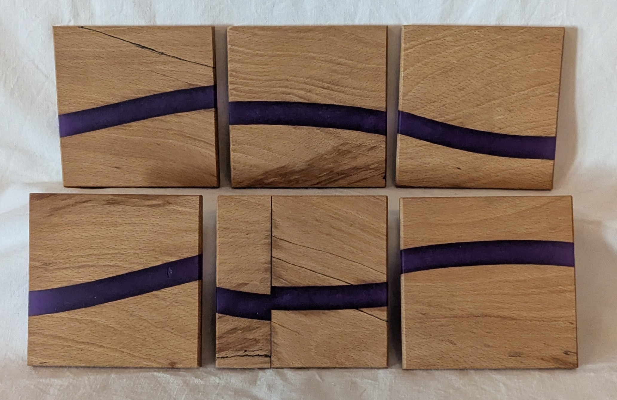 Beech with Purple Epoxy Coasters (set of 6. 100x8mm. quantity