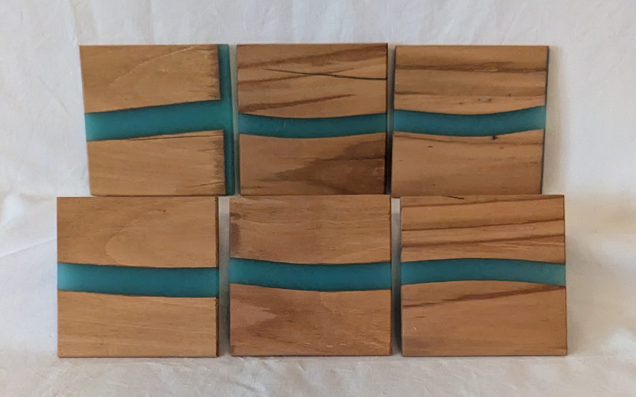 / Beech with Turquoise Epoxy Coasters. (set of 6). 100x6mm.