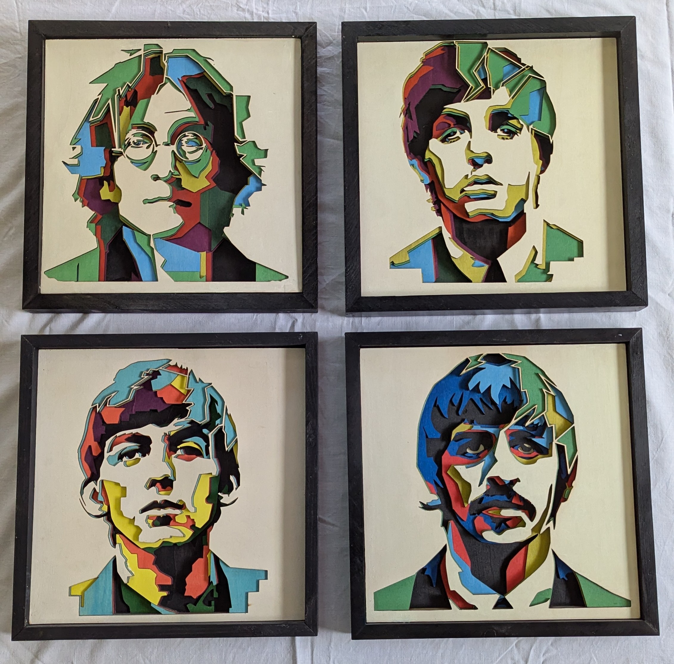 Framed Beatles Layered Laser Art all 4 Artists. 335 x 335 x 35mm