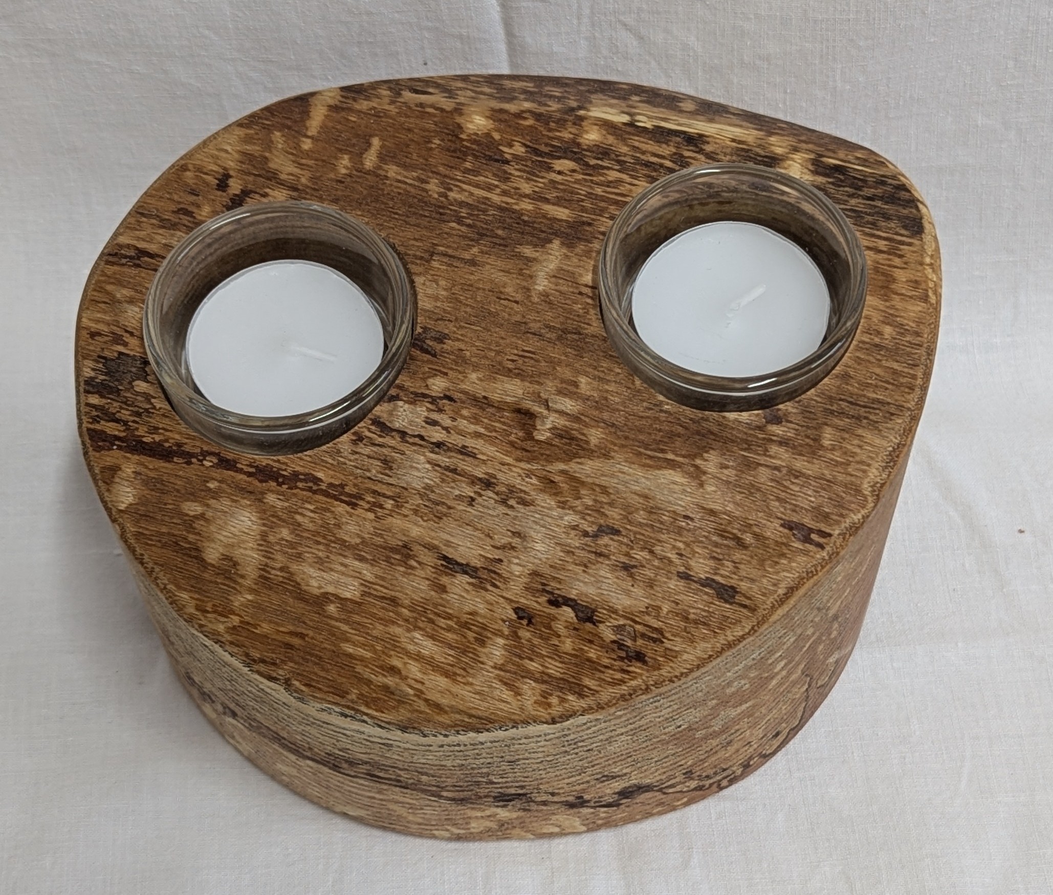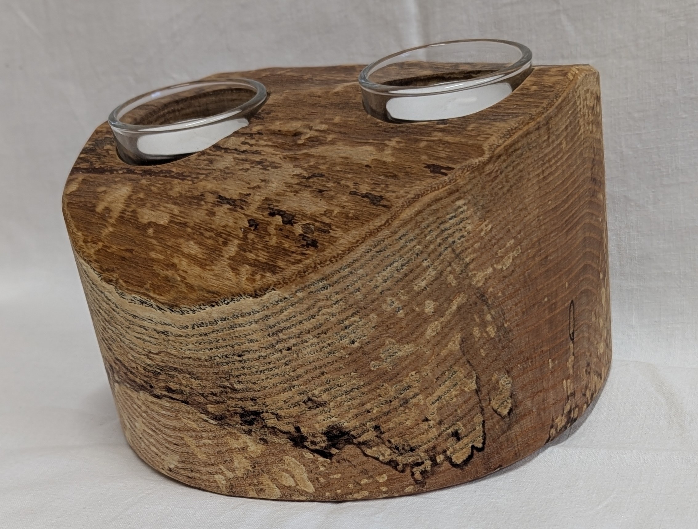/ Spalted Beech 2 Candle Tealight Holder. 170 x 160 x 110mm.