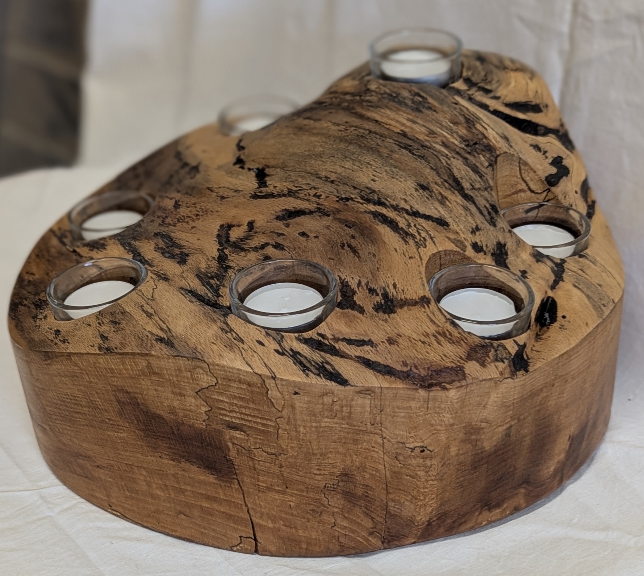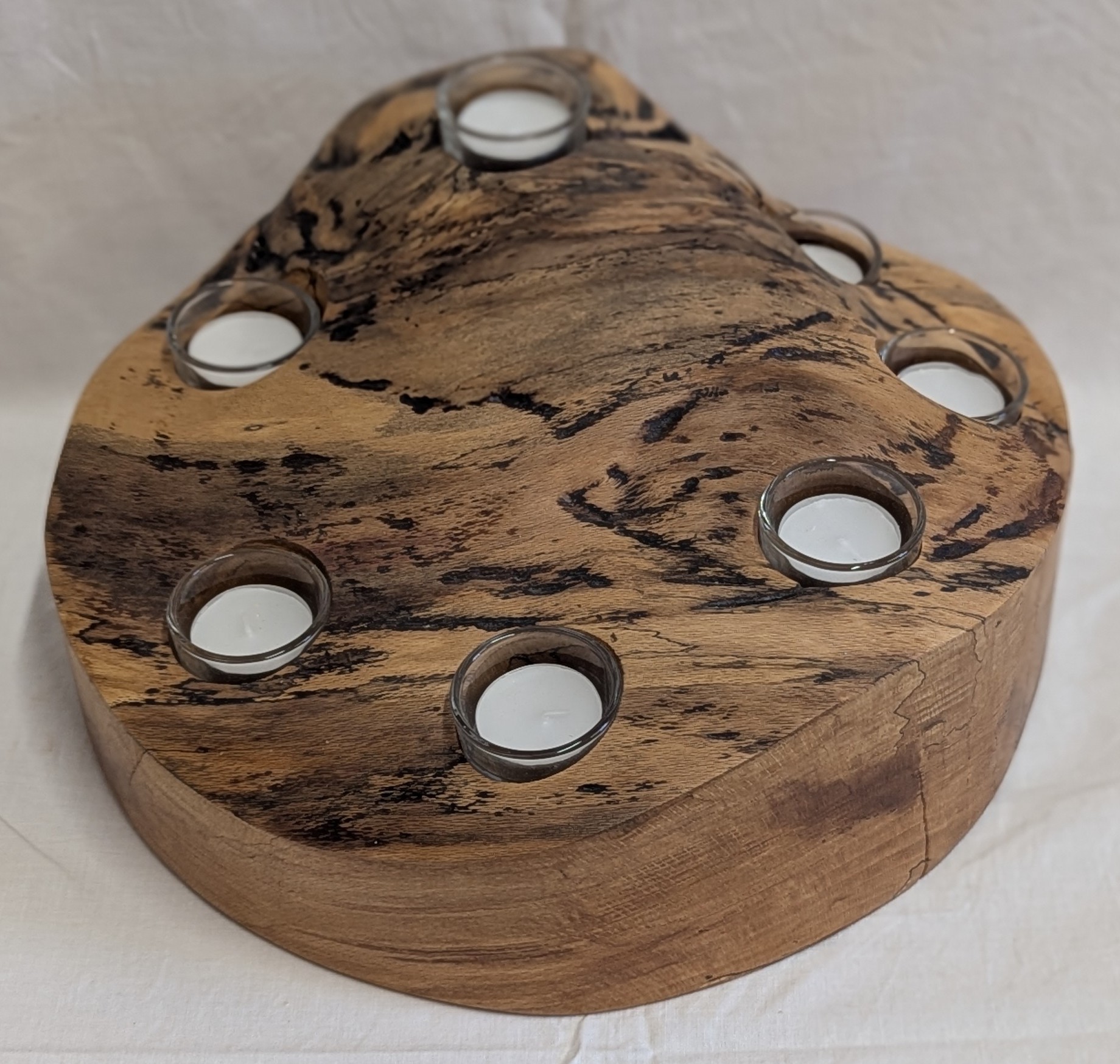 Spalted Beech 7 Candle Tealight Holder. 370 x 140mm.