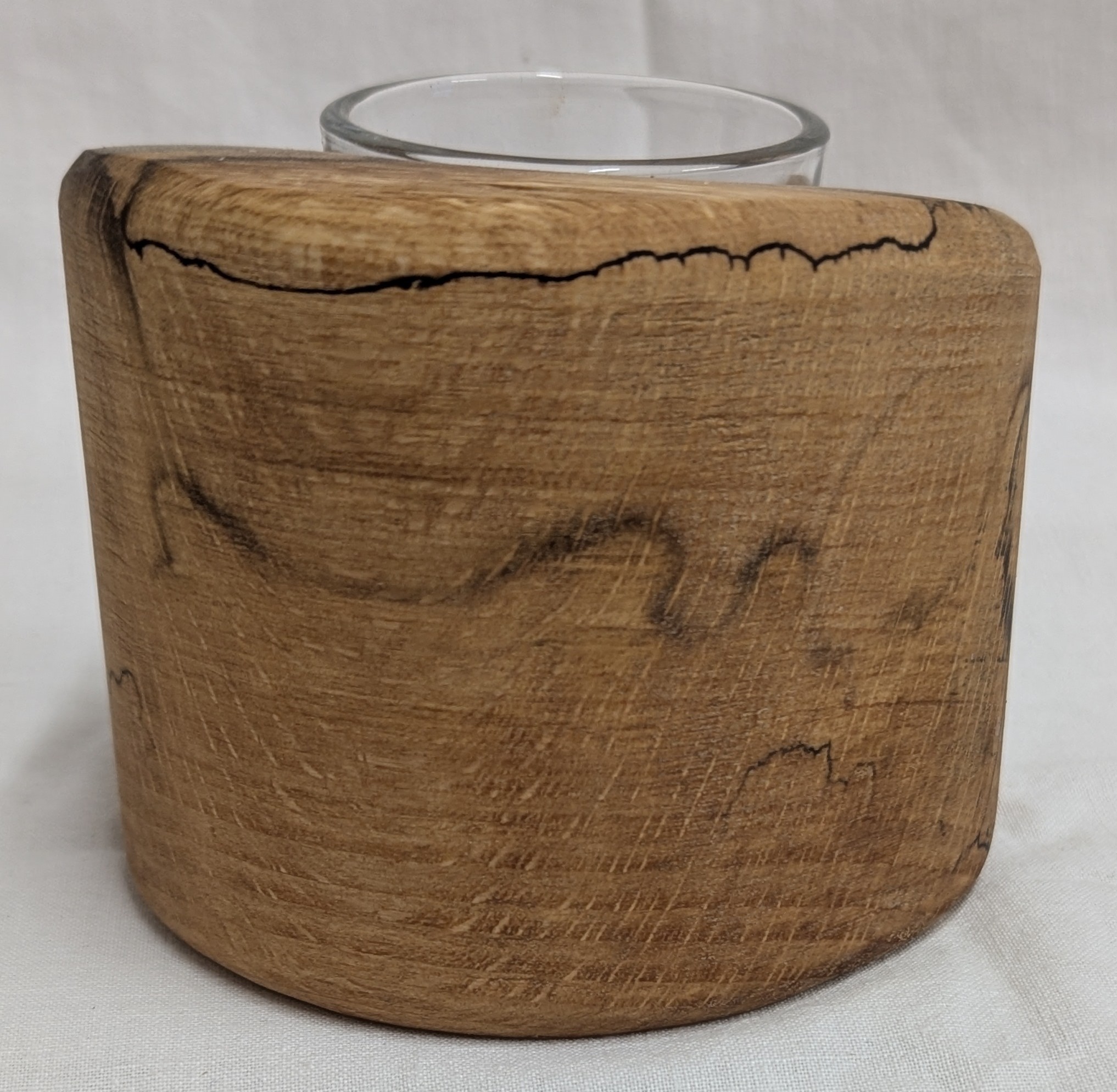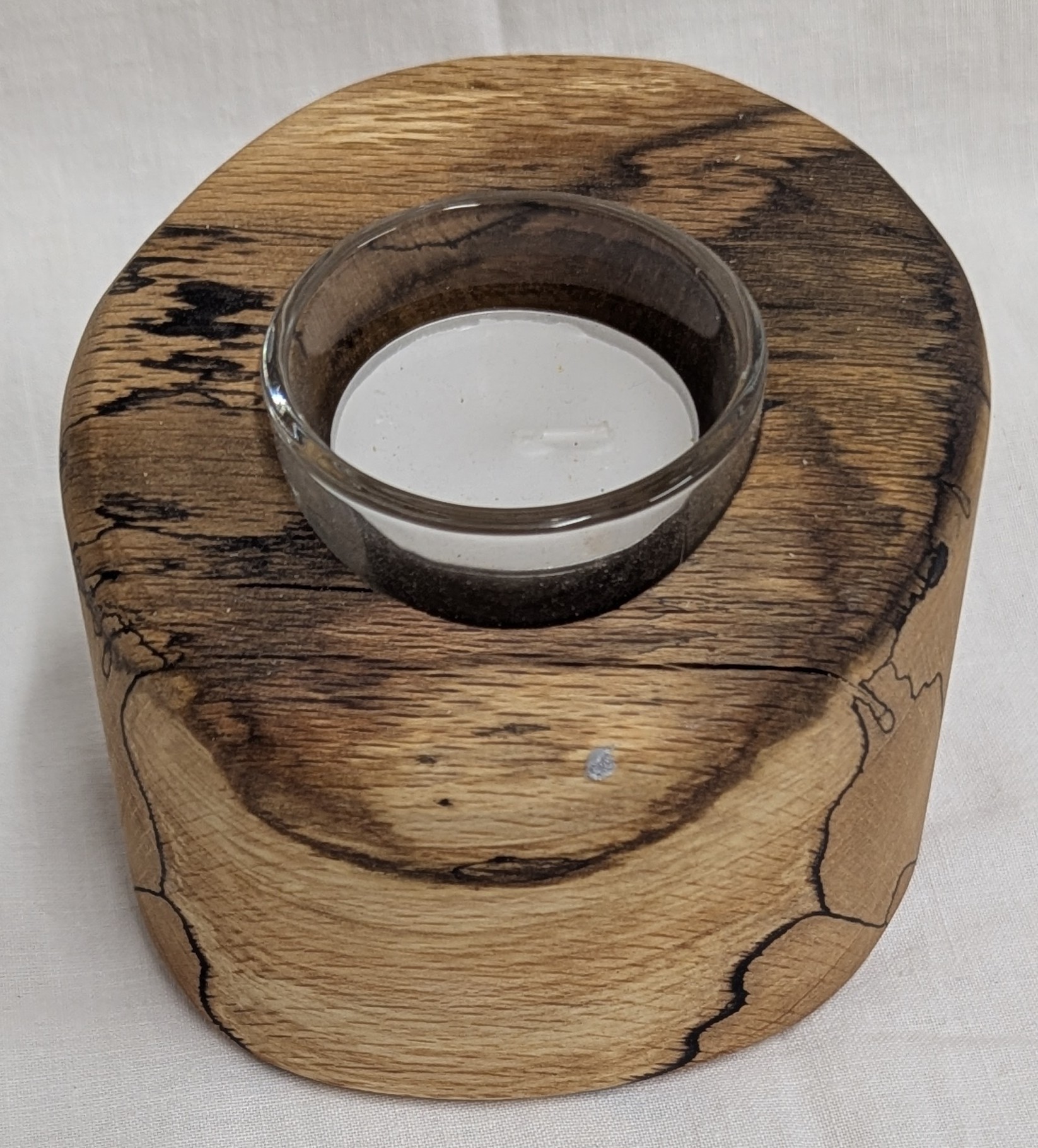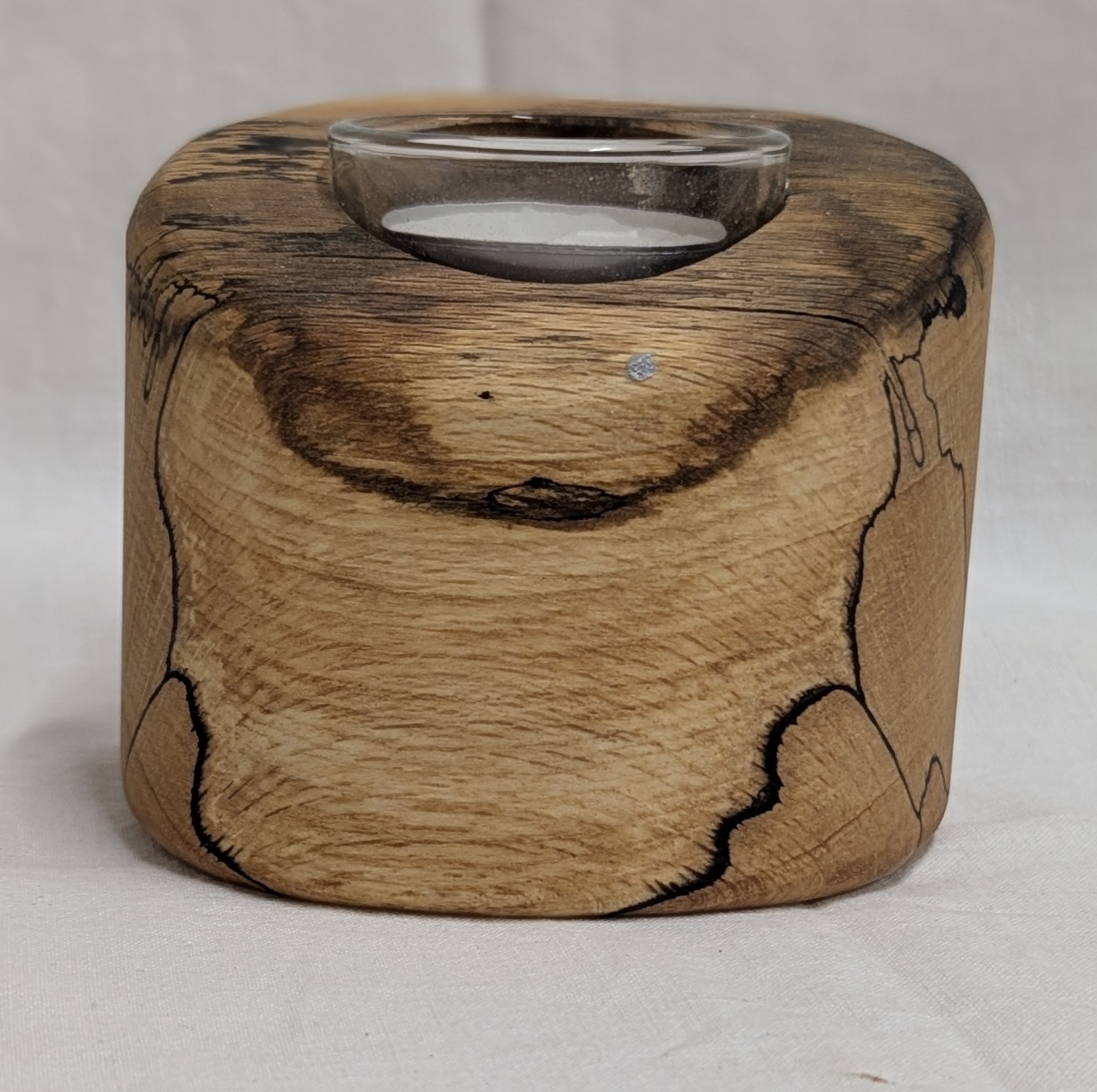 Spalted Beech Single Candle Tealight Holder. 105 x 95 x 80mm.