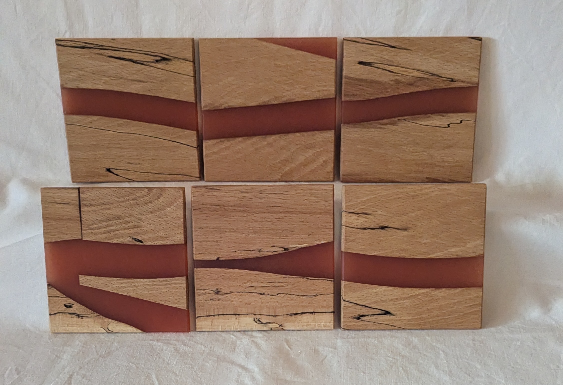 / Spalted Beech with Red Gold Epoxy Coasters (set of 6). 100x6mm.